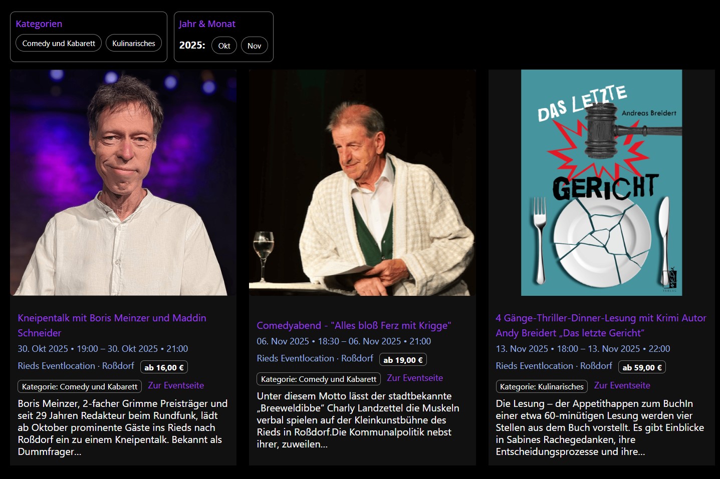 Egal ob du ein Theme oder ein eigenes Layout nutzt – das Plugin erkennt automatisch die Theme-Struktur und sorgt dafür, dass Ihre Event-Listen überall sauber angezeigt werden.